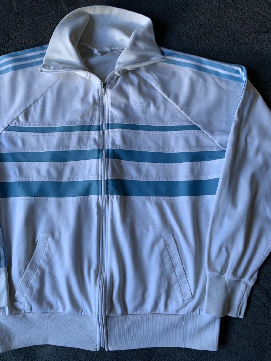 - 70s 白×水色 adidas トラックジャケット ビンテージ ジャージ vintage ユーロ ATP アディダス フランス