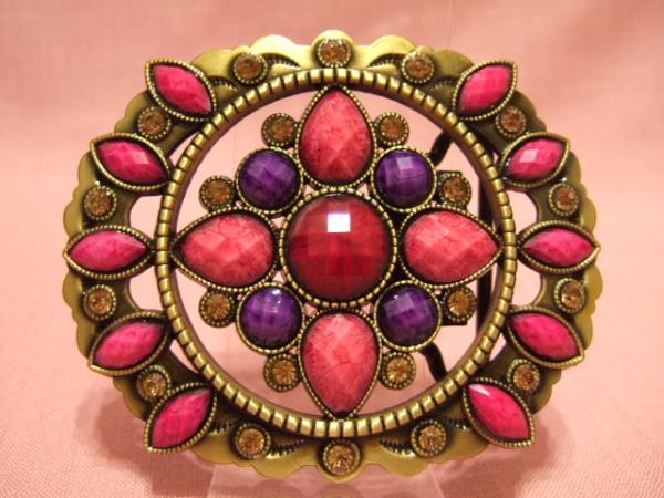 - s横浜最新 ラインストーン金♪魅惑のピンクキラキラバックル 中型 送料220円ξBckξξ54z