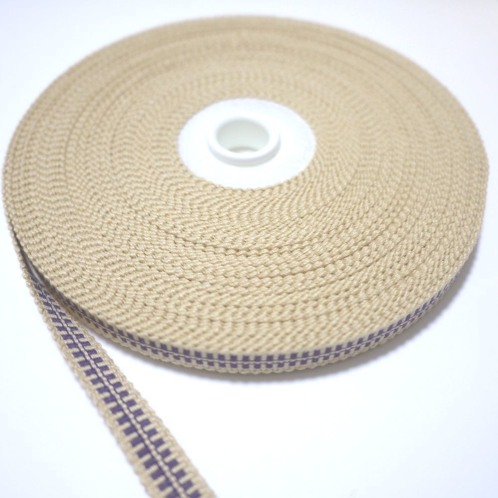 > 匿名発送★03-19-15)国内産 木綿 真田紐 綿100% 三分紐 平紐 ベージュ×紫 15m Samurai ribbon(Sanadahimo)