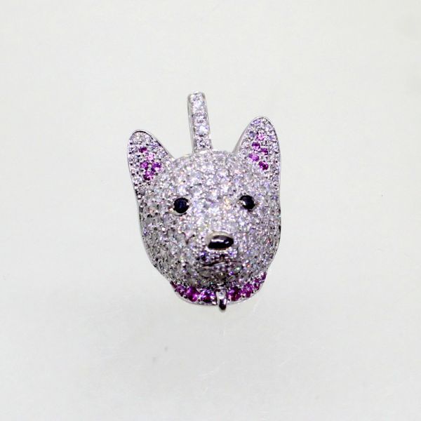 - ◎中古美品◎18金WG ダイヤ 2.10ct ピンクサファイア 0.24ct 犬デザイン ペンダント