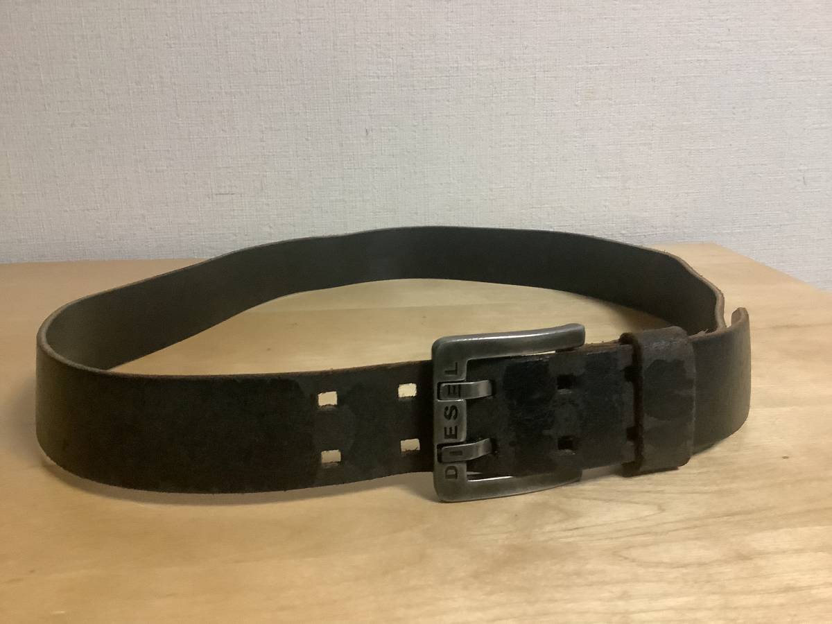 > 正規品 DIESEL ディーゼル レザーベルト こげ茶 36インチ 90cm W84~93cm 全長106cm 幅37mm 送料無料