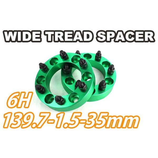 - ワイドトレッドスペーサー 2枚組 6H PCD139.7 M12-1.5 35mm 緑 ワイトレ
