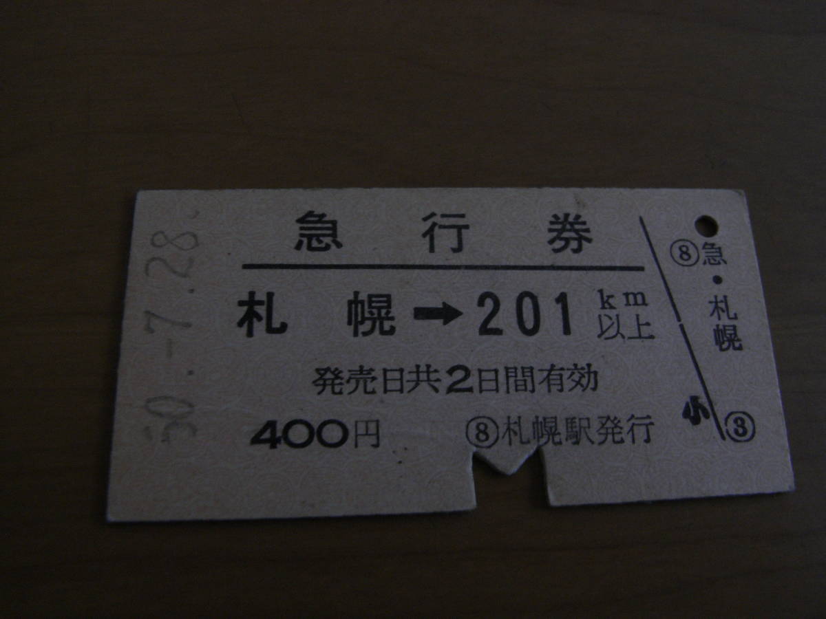 - 急行券 札幌→201km以上 昭和50年7月28日 札幌駅発行