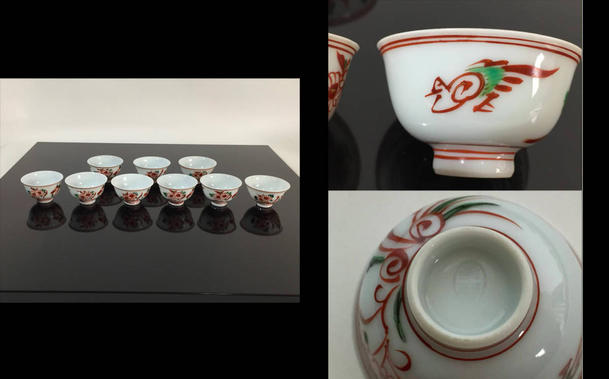 - 猪口 赤絵金彩鳥草花紋 酒器 古美術