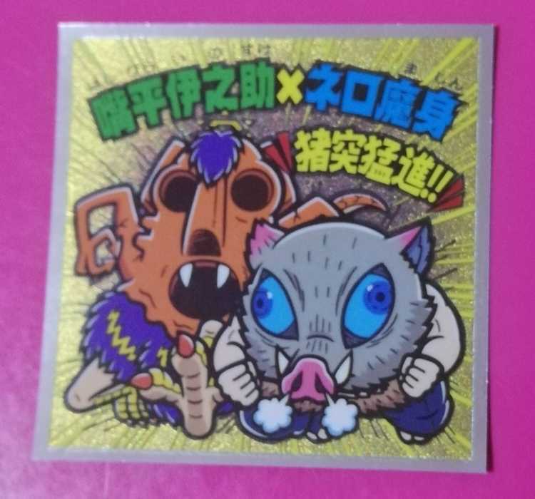 - 即決!送料85円~鬼滅の刃マンチョコ 鬼滅の刃 鬼滅の刃マン 『嘴平伊之助×ネロ魔身』s4 伊之助 シール ビックリマン ネロ魔神 レア