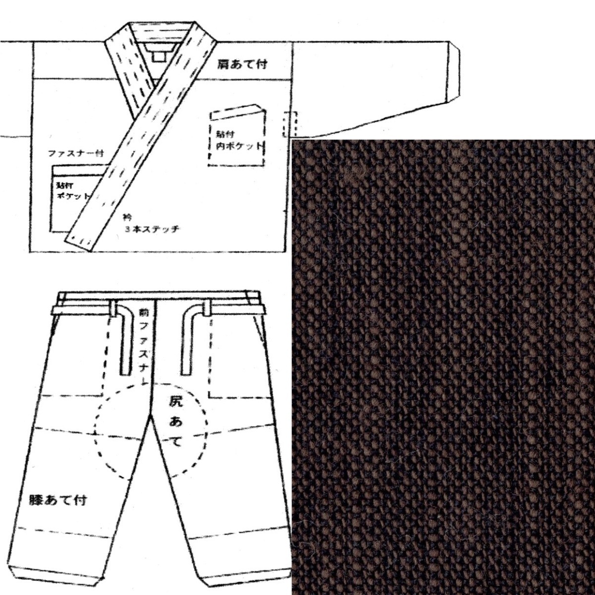 - 作務衣 さむえ 特製 本格 修行僧仕様 綿 和風紬「焦茶 こげちゃ」 M寸