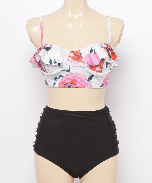 - c.u.l セットアップビキニ 水着 コーラル×アンティーク柄