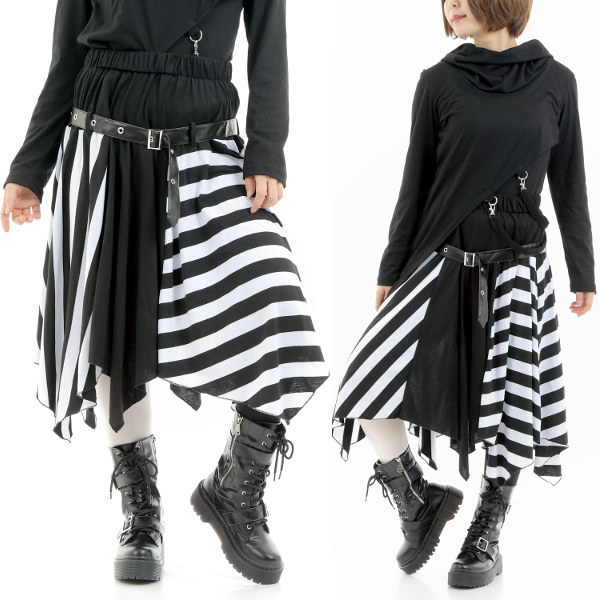 - ゴスロリ スカート ひざ丈 ミディアム アシンメトリー ゴシック V系 モード系 ロック ダンス 衣装 ライブ バンド 黒無地
