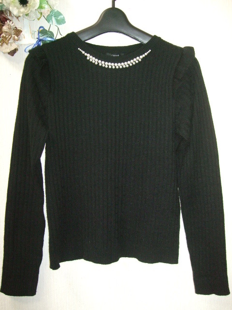 - L’ESPOIR ☆二重のパール飾り、素的セーター 薄手 黒色 M
