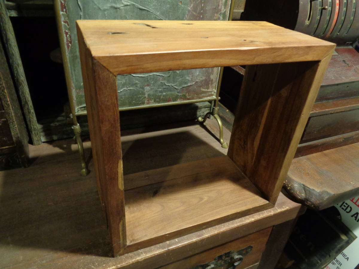 - 【フランス蚤の市オールドチーク升本棚】木製ブックスタンド無垢材レコードキャビネット古道具アンティーク骨董インテリアインダストリアル