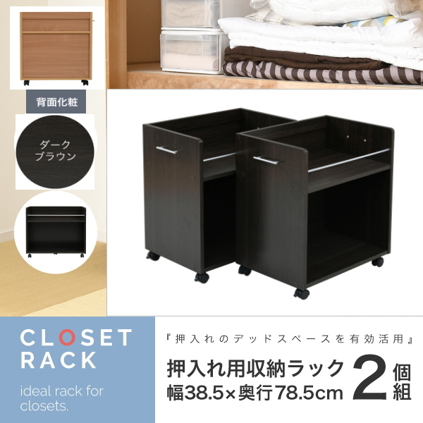 - 送料無料 ワイド ワゴン クローゼット 収納 2個セット SGT-0129 横幅38.5cm-奥行58.5cm DB ダークブラウン