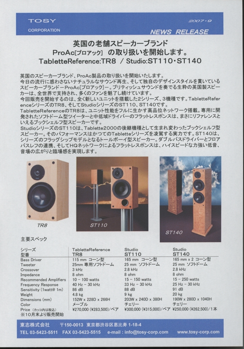- ProAc TR8/ST110/ST140のカタログ プロアック 管5440
