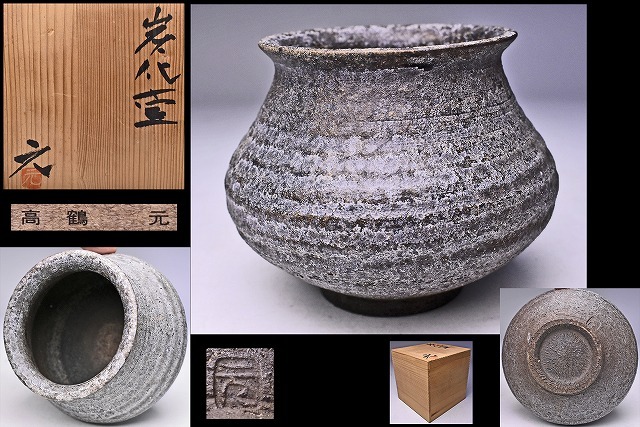 > 高鶴元 ★ 炭化壺 ★ 共箱栞 ★ 上野焼のベテラン ★ 須恵器風 ★ 花瓶に ★ 検:高鶴夏山 高鶴大 ★