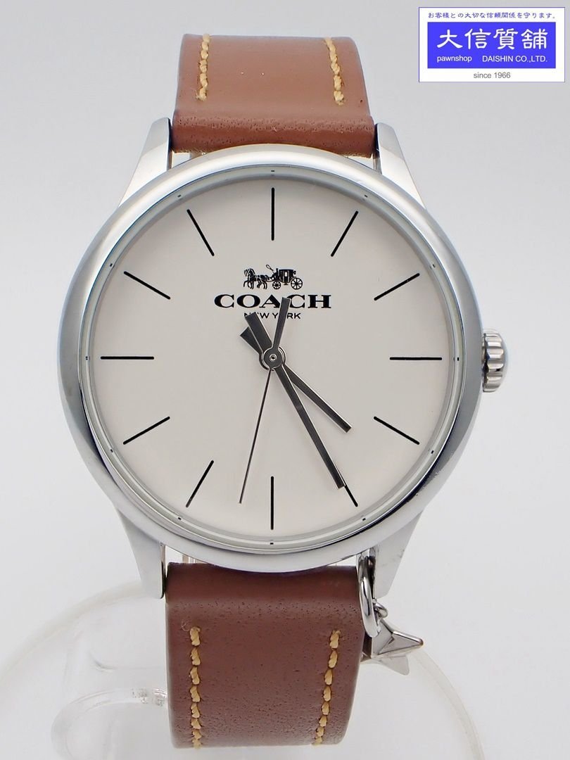 > COACH コーチ レディースウォッチ SS クォーツ CA.117.7.112.1535 レザーベルト 中古A 【送料無料】 B-2083