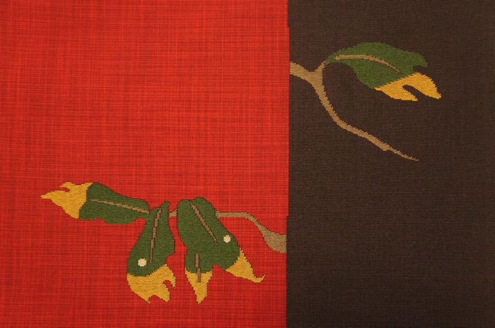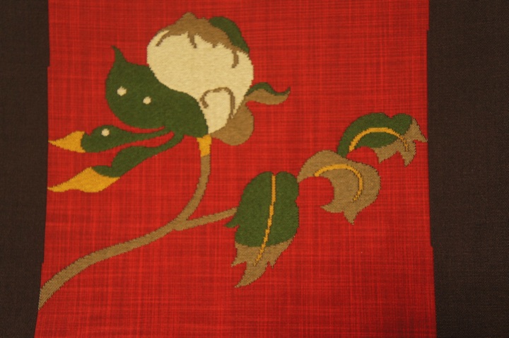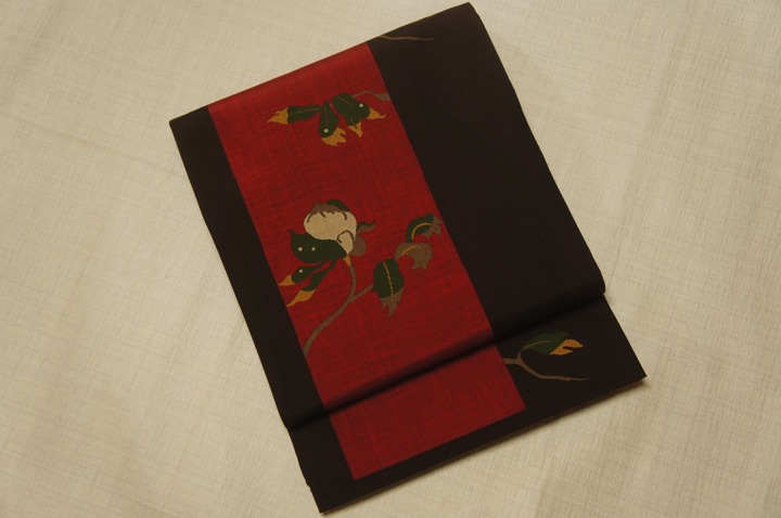 - 特選『木屋太』焦げ茶色紅樺色縦縞花模様未着用袋帯O12057