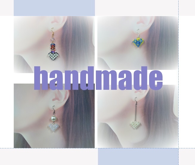 - サージカルステンレスピアス金具【ビーズ編みハートピアス4セット一括販売】送料無料/ハンドメイドアクセサリー