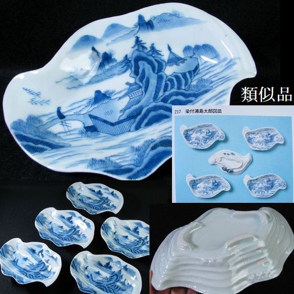 - 古平戸 牡蠣形染付皿5枚 図録類似品 19世紀後半/20i117