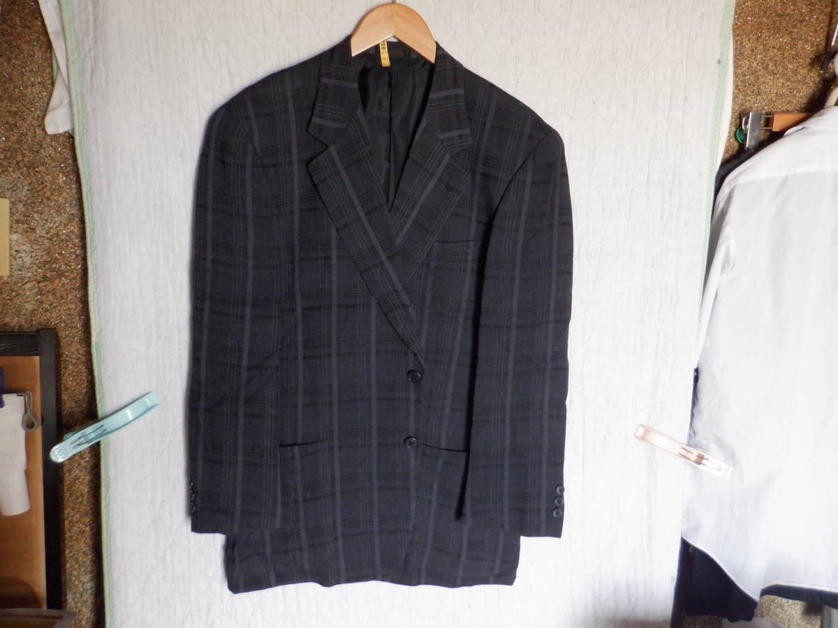 > Mx. Dom ジャケット ブレザー 春夏物 紺色にチェック柄 M-L A5-A6 クリーニング済み 日本製 美品