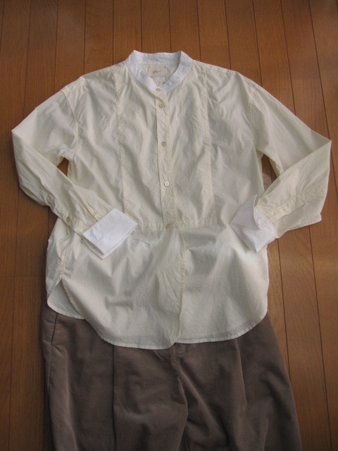 > アングローバル購入インポート イタリア製shirtのスタンドカラー アンティーク風ブラウス L相当/クラシカルきれいめデザイン