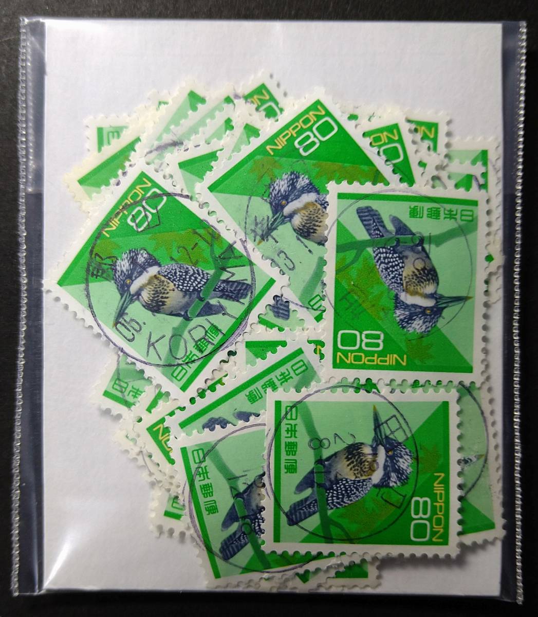 - 平成切手・80円(ヤマセミ)・満月印【使用済】(80枚)