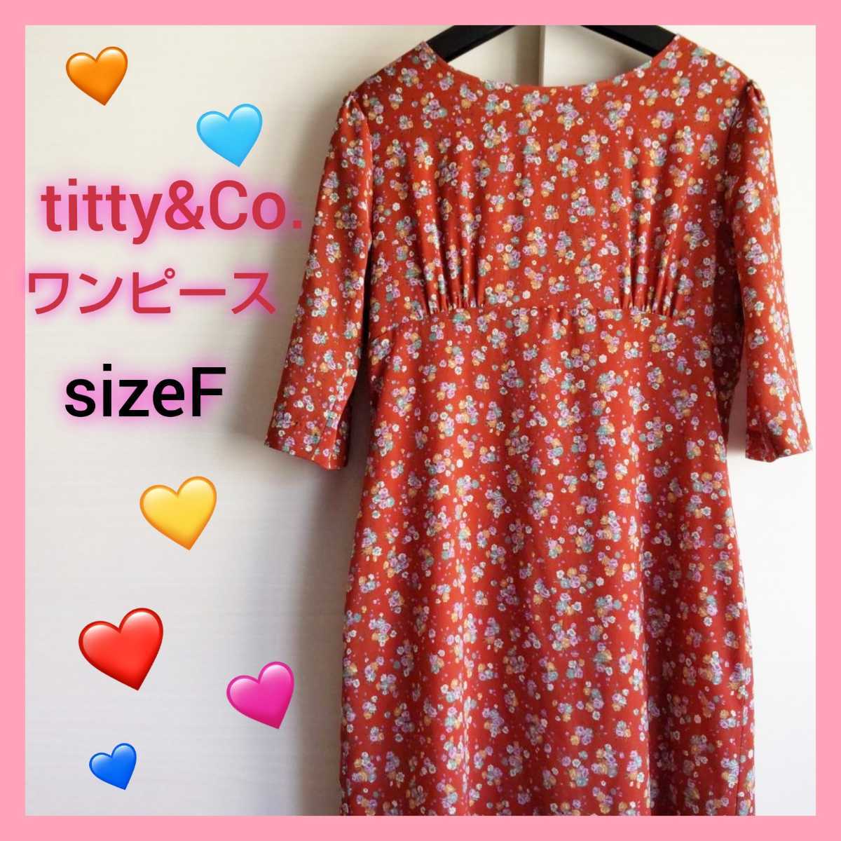 - 秋 ワンピース 花柄 ワンピ フリーサイズ ティティアンドコー titty&Co 赤 七分袖 M 冬 安 ミニワンピ セール 大特価 かわいい