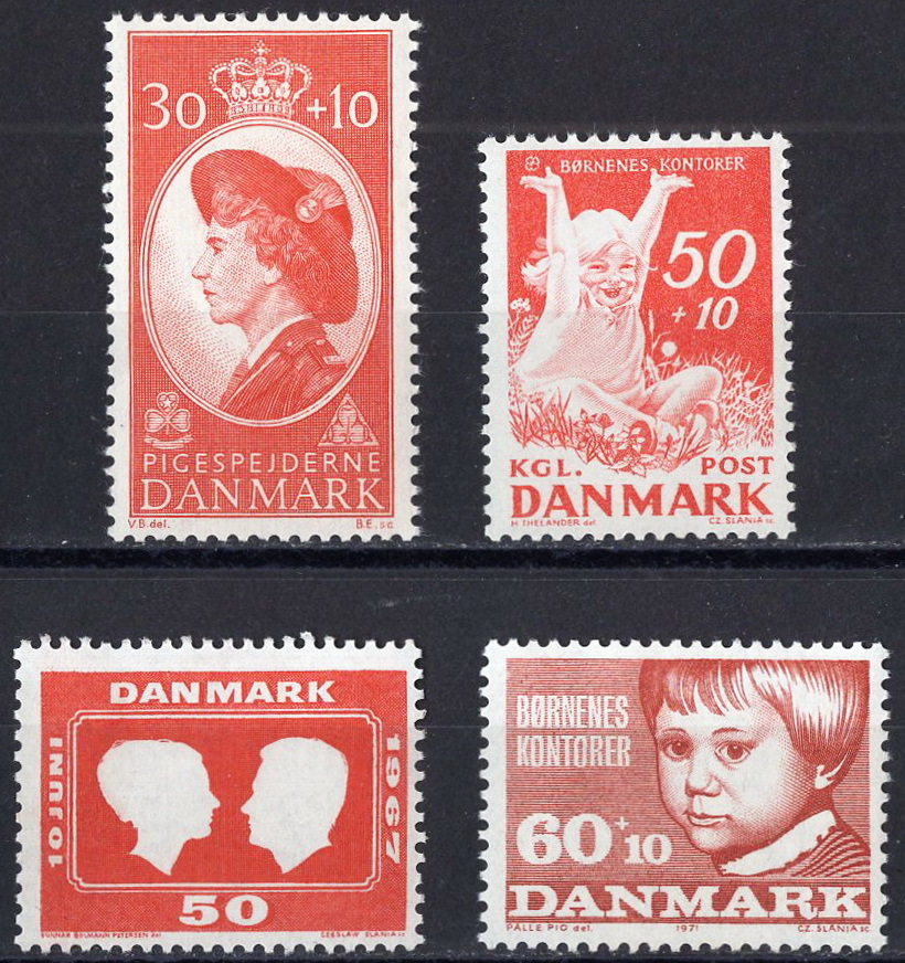 - ★1960-71年 デンマーク-「イングリッド王妃」+「幸せな子」+「マーガレット王女結婚」+「全国児童福祉協会」各1種完 未使用(NH)★ZW-625