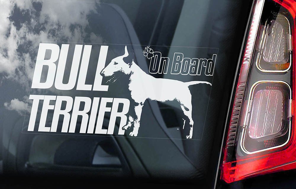 - ◆ブルテリア ブル・テリア 外張り カーステッカー 22×10cm@外貼り カー ステッカー 車 ガラス ウインドウ シール DOG ON BOAD 犬 D8 2383