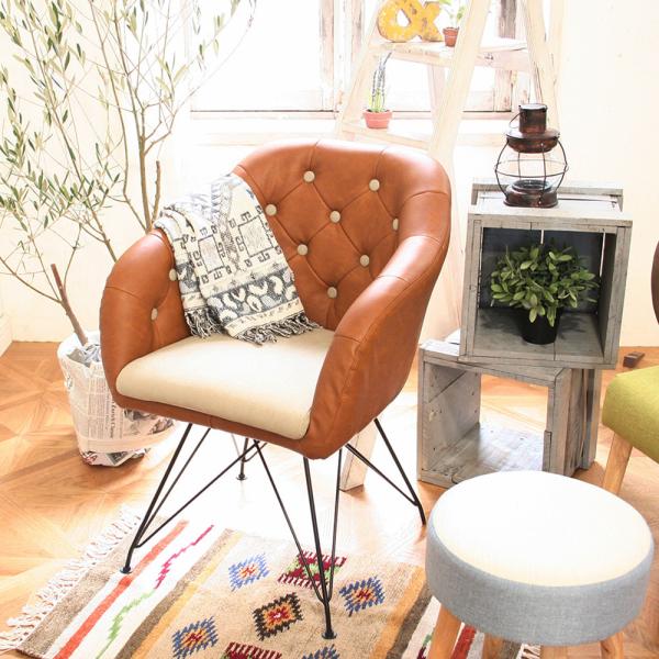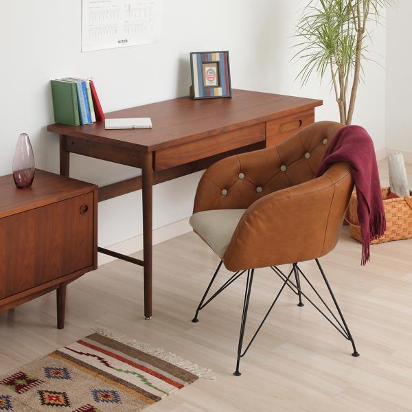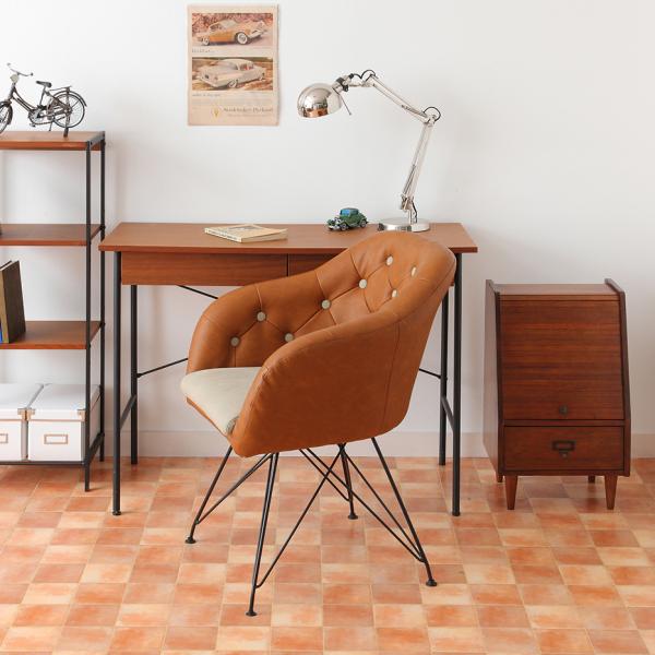 - レトロなチェア ベージュ×ブラウン おしゃれ 北欧 デスクチェア オフィスチェア 肘付 IBCH-2803BE-BR