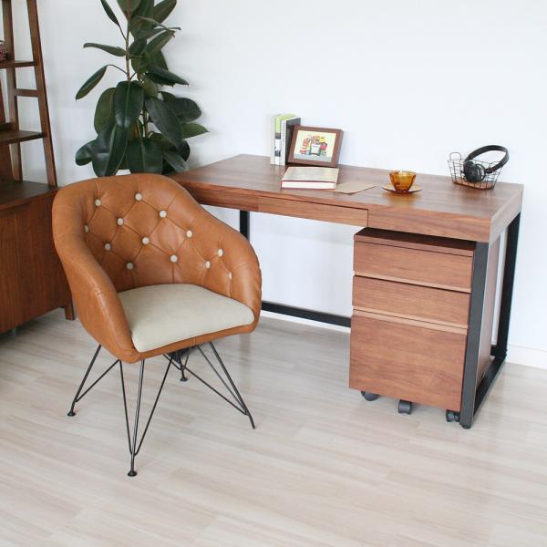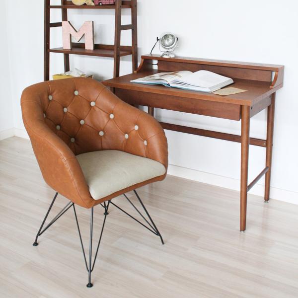 > レトロなチェア ベージュ×ブラウン おしゃれ 北欧 デスクチェア オフィスチェア 肘付 IBCH-2803BE-BR