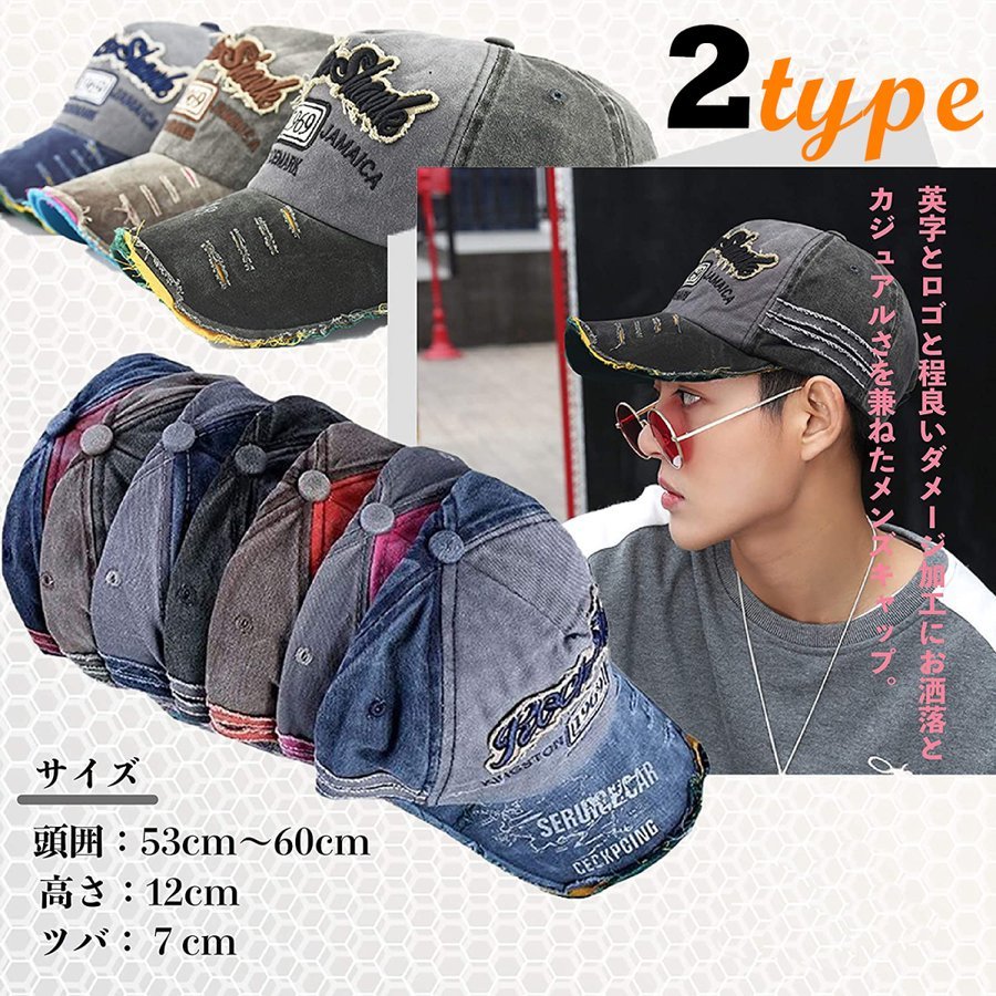 - メンズ キャップ レディースダメージ キャップ 刺繍 野球帽 ワークキャップ