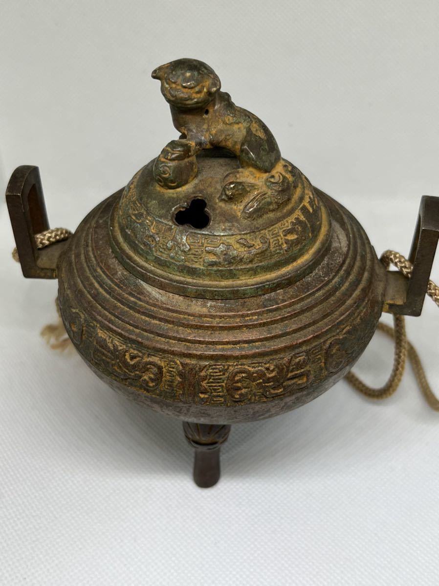 - 鋳銅鼎型香炉 銅製 瑞獅子香炉 三足香炉 御香 香道具 茶道具 銅器 置物 古美術品