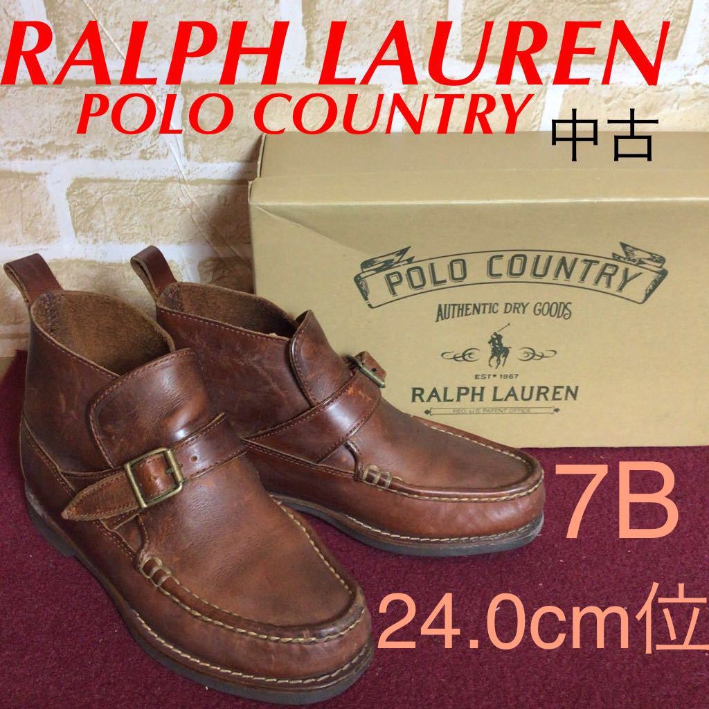 > 【売り切り!送料無料!】A-184 RALPH LAUREN!POLO!レザーショートブーツ!ダークブラウン!7 24.0cm位!高級!中古!箱付き!