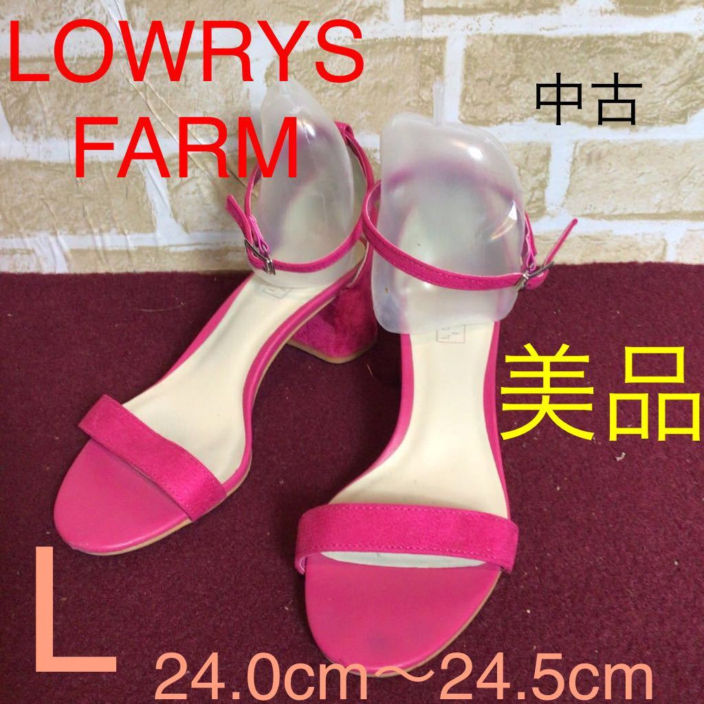 > 【売り切り!送料無料!】A-175!LOWRYS FARM!アンクルストラップサンダル!ビビットピンク!L 24.0〜24.5cm位!可愛い!派手!おしゃれ!中古!美品