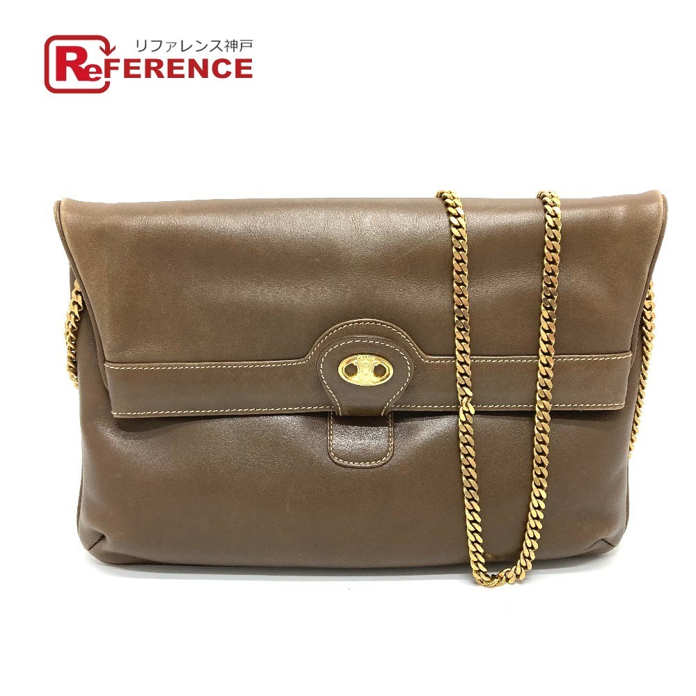 > CELINE セリーヌ ロゴ金具 ヴィンテージ チェーン クラッチ ショルダーバッグ レザー ブラウン レディース【中古】