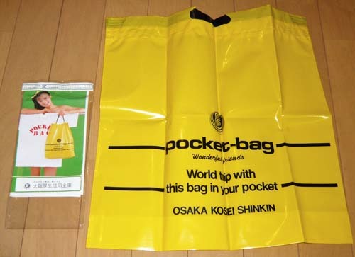 - 最終価格!昭和レトロ 当時物 メデパック(携帯手さげ袋) 現代人の風呂敷 黄色 未使用 厚生信用金庫・企業名入 コレクター用 エコバッグ
