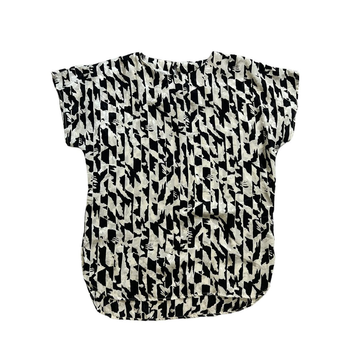 - 【1990s】ビンテージ シルクトップス シャツ バックボタン プルオーバー 古着 総柄 白黒 ユーロ デザイン