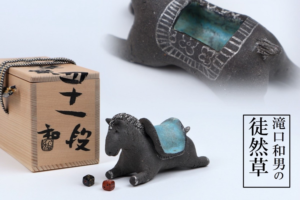 滝口和男「第四十一段」徒然草より 共箱 木札付き 馬 / 手捻り
