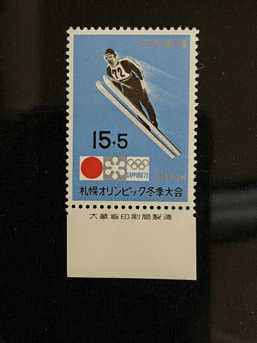 - 切手 単片 【札幌冬季オリンピック】スキー ジャンプ 銘板付き