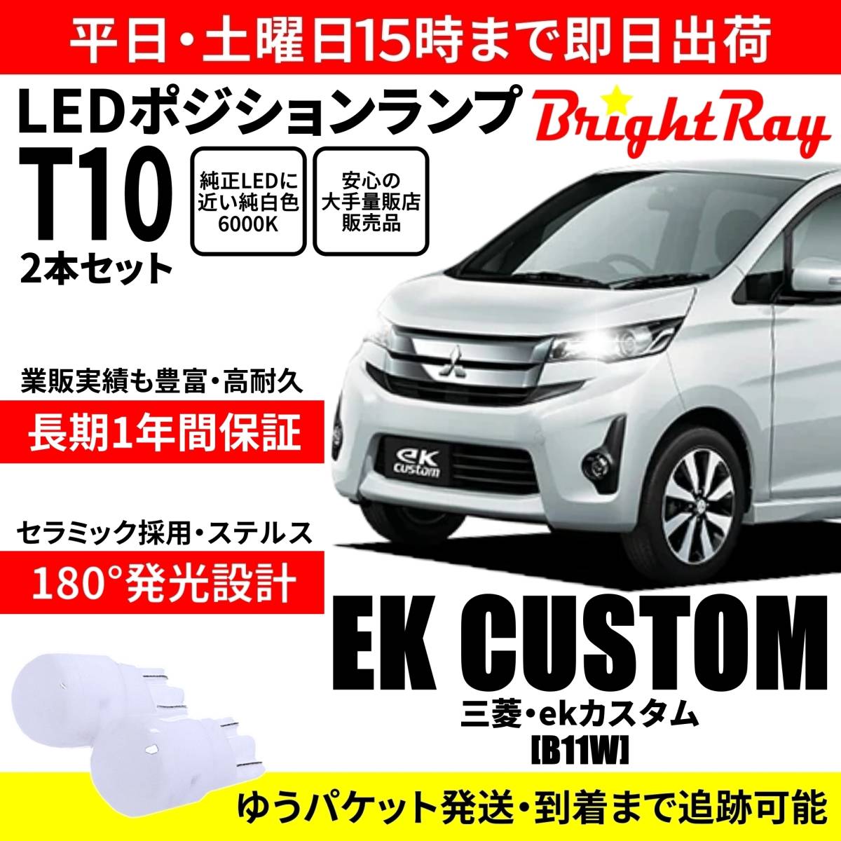 - 送料無料 1年保証 三菱 ekカスタム B11W BrightRay T10 LEDバルブ ポジションランプ 車幅灯 車検対応 2本セット ホワイト 6000K