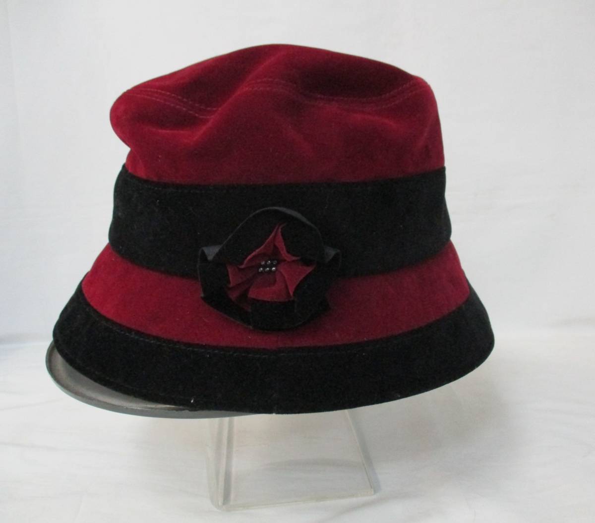 - IK) ④【SSサイズ】 帽子 レディース 秋冬 赤 黒 バイカラー ベロア風 .