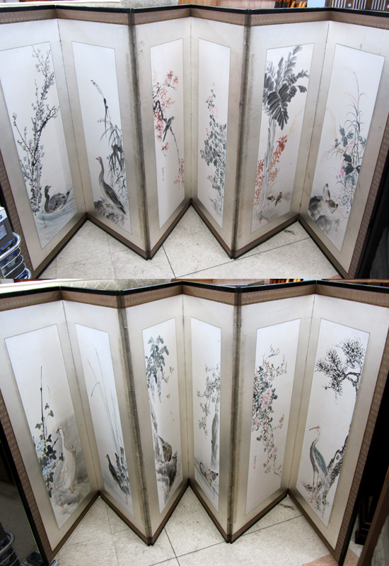 - 札幌市内近郊限定 屏風 六曲一双 在銘 寛泉 花鳥画 札幌市