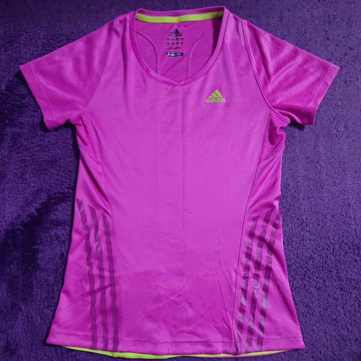 - アディダス adidas Tシャツ ポケット付 M ピンク×黄緑