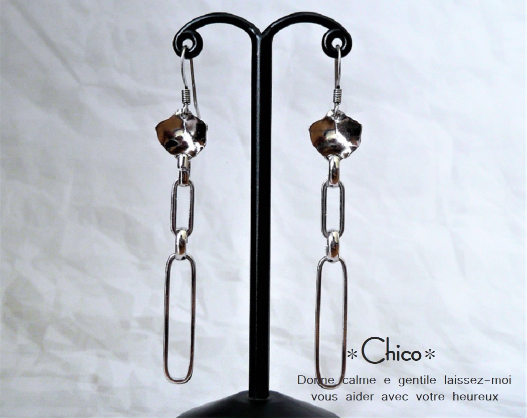 - 【サージカルステンレス製 シルバー】シルバーデザインチェーン&花びらプレート ハンドメイドピアス ♪ ★★2点以上送料無料!★