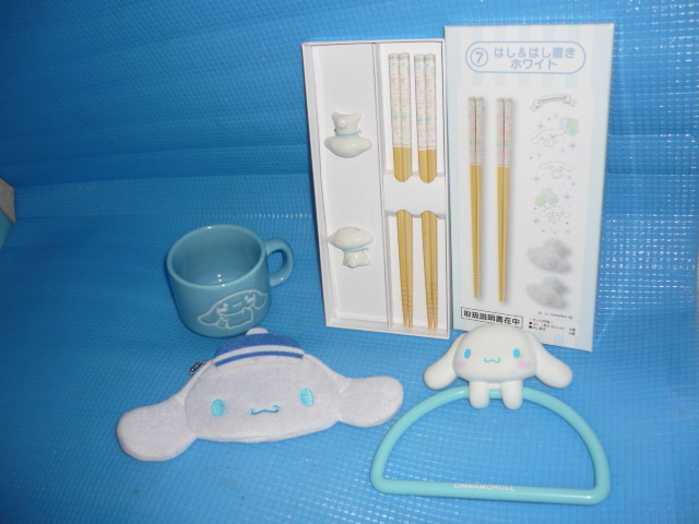 - E★未使用・非売品★当たりくじ/シナモロールくじ 箸&箸置き ホワイトとマグカップ他4点