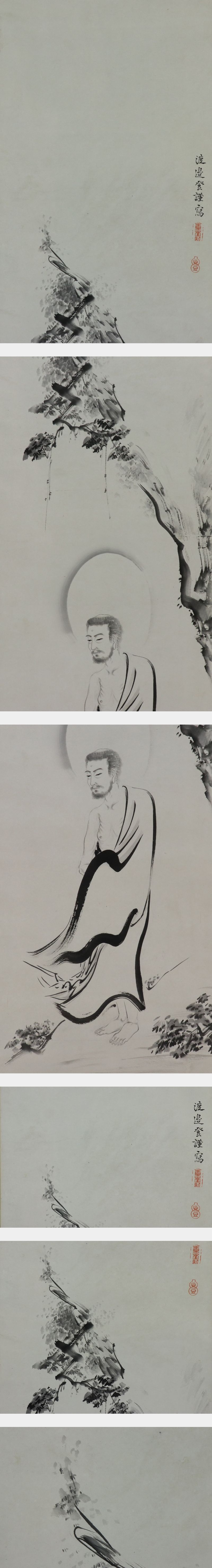- 【真作】渡辺華山【釈迦出山図】◆紙本◆合箱◆掛軸 u03243