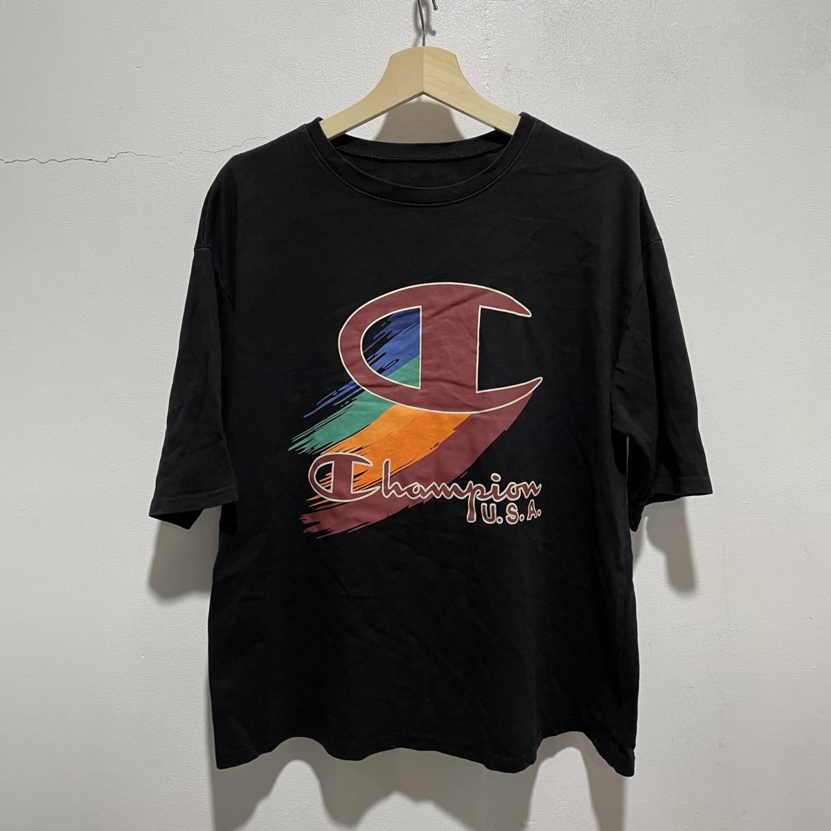 > ☆送料無料☆champion☆チャンピオン☆半袖両面Tシャツ☆黒☆L☆ボックスシルエット☆e22c