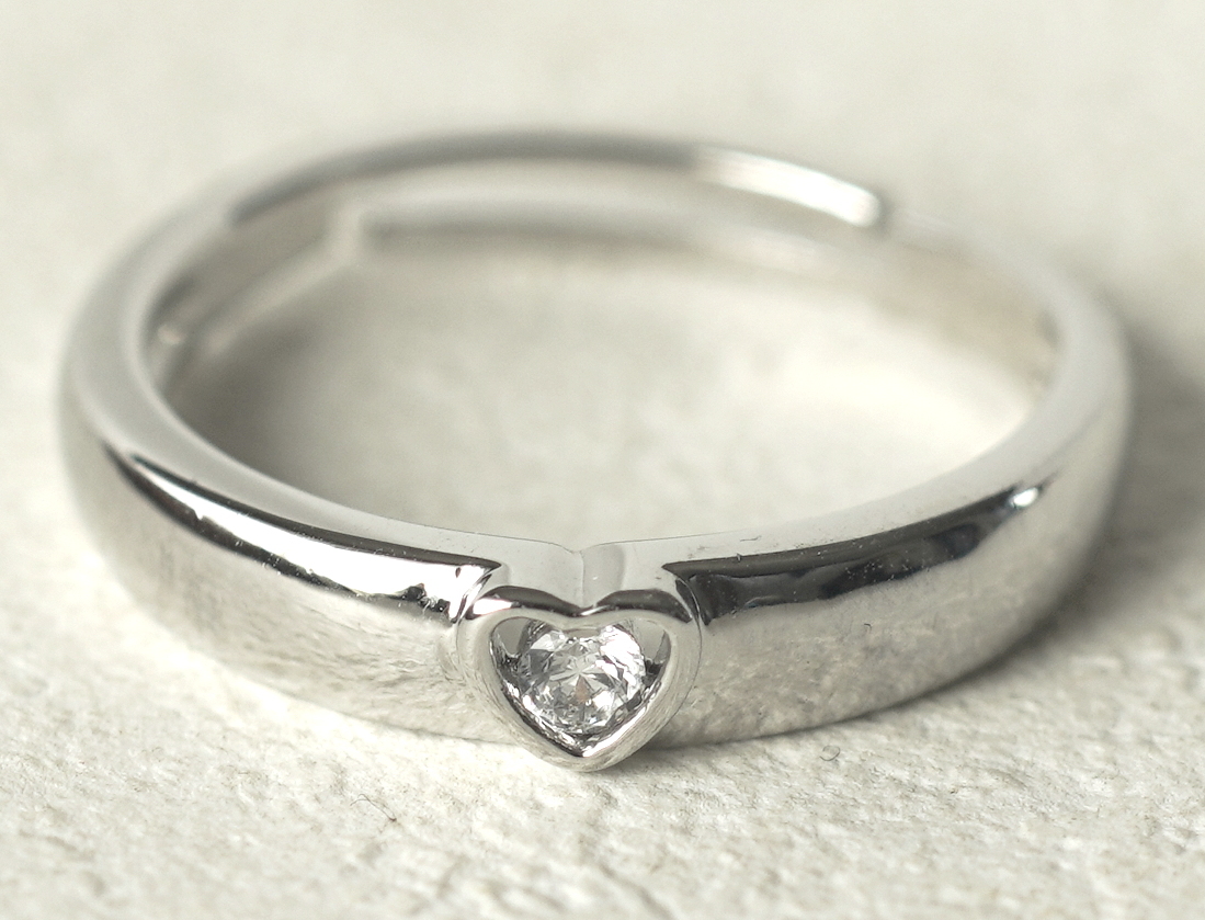 - シルバー925製 一粒ジルコニア付きハートのデザイン フリーサイズリング