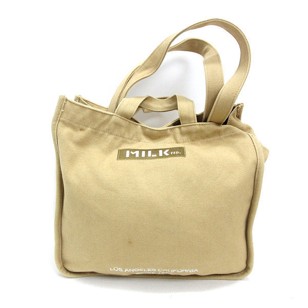 - k■ミルクフェド/MILKFED 2WAY キャンバスショルダーバッグ/ハンドバッグ/ベージュ/BAG/LADIES■249【中古】