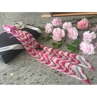 - ★正規品★CHANEL★スリムスカーフ★シルク100%★ピンク&ホワイト★送料込み