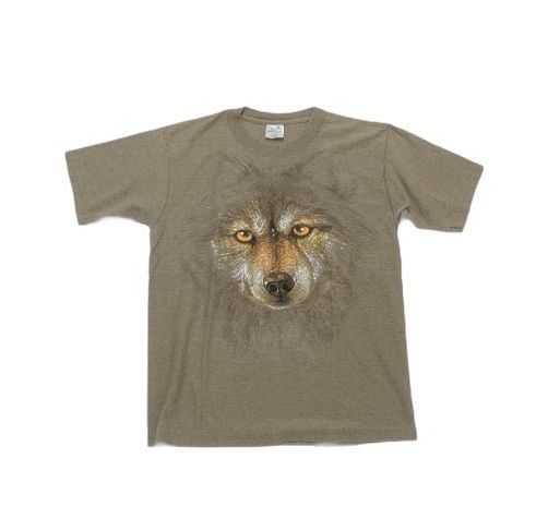 > 90's 米国製 MADE IN USA Hazelwoods Tシャツ シアサッカー アニマルプリント オオカミ ウルフ ビッグフェイス サイズL [l-0238]